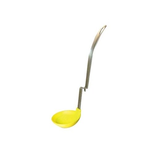 使用の合間にお鍋の縁に腰掛け状態でおけるお玉です。ほとんどのフタはそのままのせられます。 |
