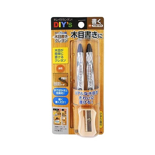 リアルな木目が簡単に書けるクレヨン!手でぼかすと効果的!「かくれん棒 簡単パテ」や「かくれん棒 ちょい塗り」の木目書きに最適削り器付きで、細かな木目も書くことができます。 |