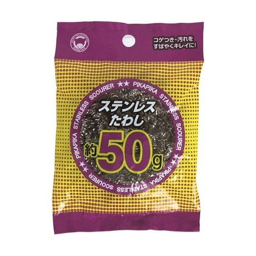 手ざわりがソフトで、弾力性のよいステンレスたわしです。ガンコなコゲつきや油汚れを素早くきれいに落とします。ステンレスなので錆びにくいです。 |