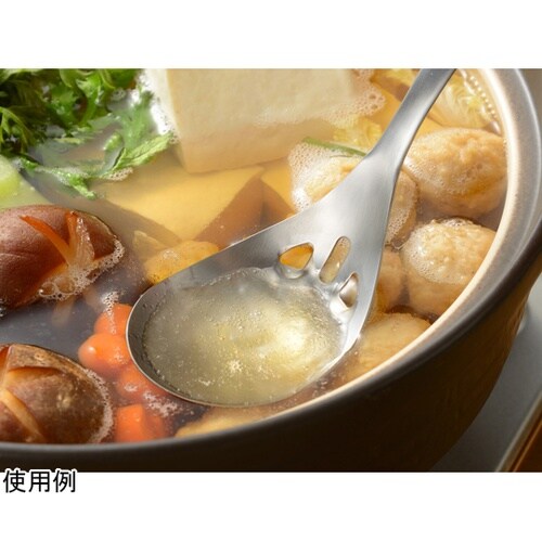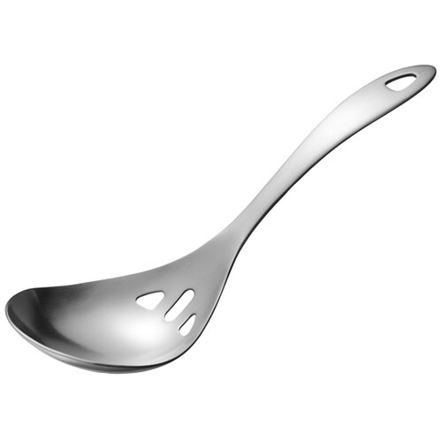 汁を切りたい時もほしい時もこれ一本。傾けるだけでサッと汁が切れるので、具だけ盛ったり、汁ごと盛ったりがこれ一本でできるサービングスプーンです。 |