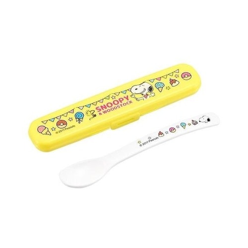 持ち運びに便利なケース付スプーンです。柄が長く、小さめのスプーンで、生後5ー6ヶ月頃のゴックン期に適しています。世界中で愛されるスヌーピーとウッドストックがスイーツに囲まれた可愛いイラストです。 |