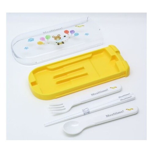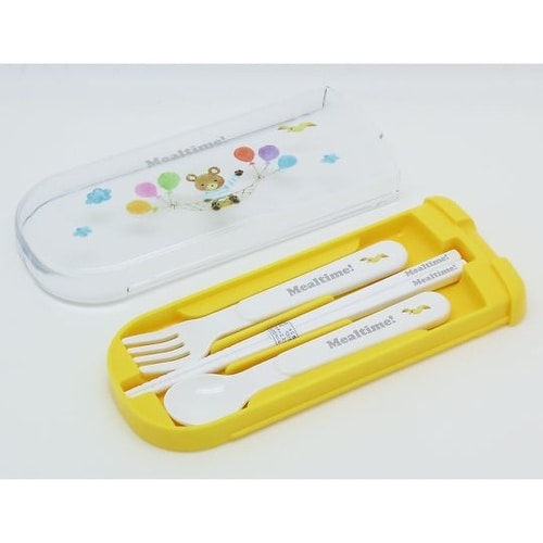 ミールタイムのお箸・フォーク・スプーン・ケースのセットです。指を掛けてスライドできるケースなので、小さなお子様でも簡単に開閉することができます。安心の日本製です。食洗機対応でお手入れ簡単です。 |