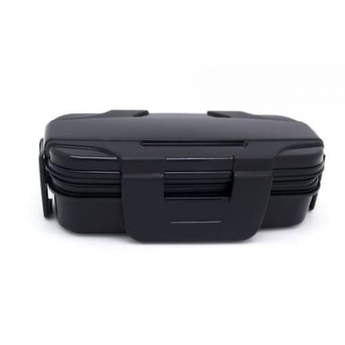 ガッチリ4点ロックでしっかり密閉できるお弁当箱です。本体が入子になりコンパクトに収納できます。19.5cmのお箸付きだから別でお箸を用意する必要がありません。蓋以外は電子レンジ対応です。 |