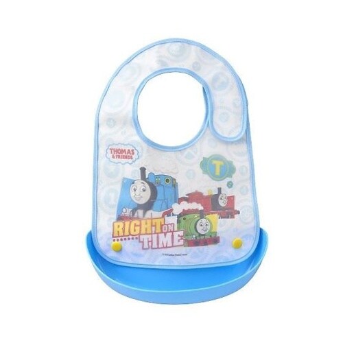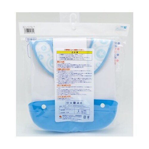 ポケット付きで、食べこぼしや飲みこぼしをしっかりキャッチします。エプロンの表面は撥水性のある素材を使用しているので、お洋服が汚れにくく安心です。 |