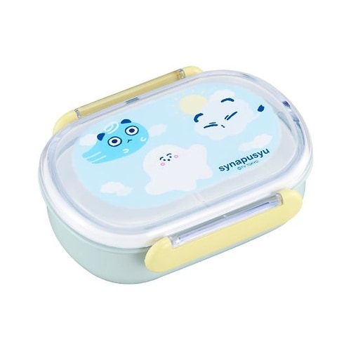 シナぷしゅの容量270mlの2点ロック式1段弁当箱です。容量100mlの中子が2個付いています。銀イオンの抗菌力で樹脂表面の細菌の増殖を抑制するバクテキラーを配合しています。 |