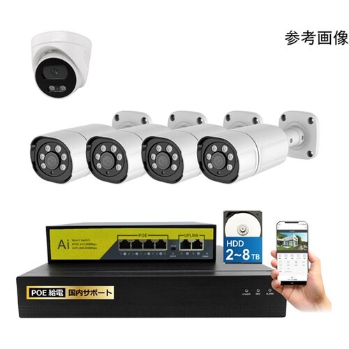 ブロードウォッチ 400万画素PoEタイプNVR防犯カメラセット バレットカメラ4台 ドームカメラ1台、HDD4TB付き SEC−N−4M1FM−4T A0C4-0068
