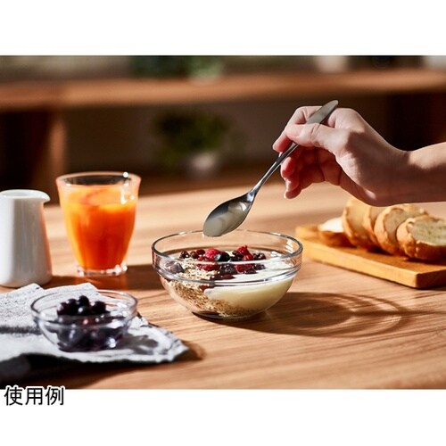 口当たりが滑らかなスプーンです。小さめのサイズ感で女性やお子様におすすめです。さじ部分が平らな形状なので、口元が汚れにくいです。お食事からデザートまで様々なシーンでお使いいただけます。 |
