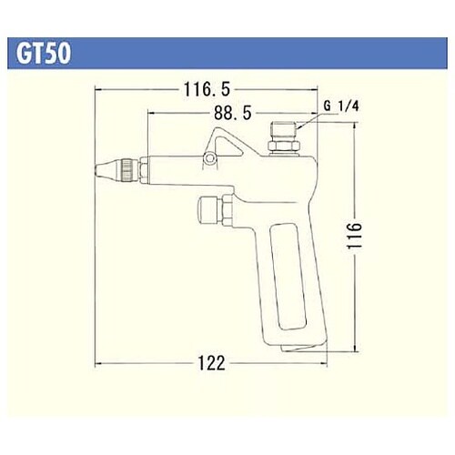 吊り下げ用エアー流量調整付き ノズルのローレット部を閉めるとエア流量が多くなり、緩めると少なくなります。 |