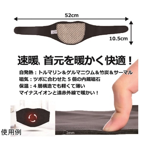 装着すれば即実感『首』…高密度トルマリンで血流UP!磁石でツボを刺激し代謝を促進!速暖、首元を暖かく快適に!自発熱:トルマリン&ゲルマニウム&竹炭&サーマル。磁気:ツボに合わせた5個の内蔵磁石。 |