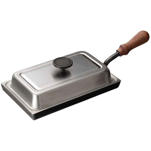 お肉を美味しく焼くための極厚4.5mmの「大人の鉄板」です。1ー2人におすすめなコンパクトサイズです。蓋付きなので、蒸し焼きもでき、ハンバーグや餃子など料理の幅が広がります。 |