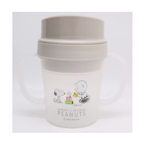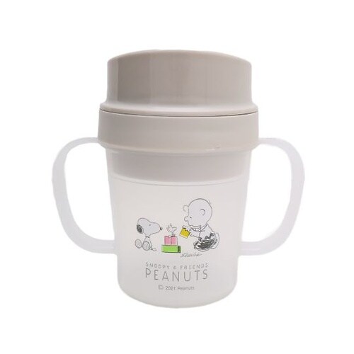 コップが倒れても飲み物がこぼれにくいトレーニングコップです。90度以上傾けると飲むことができるので、自然とあごをあげるくせがつきます。 |