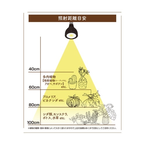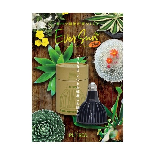 室内で植物が育つLED。太陽光に近い光で植物の光合成を促進。植物の光合成に有効な光を”ワイド”に照射。日光を好む植物も育成可能。観葉植物の育成はもちろんテラリウムにも最適。 |