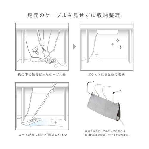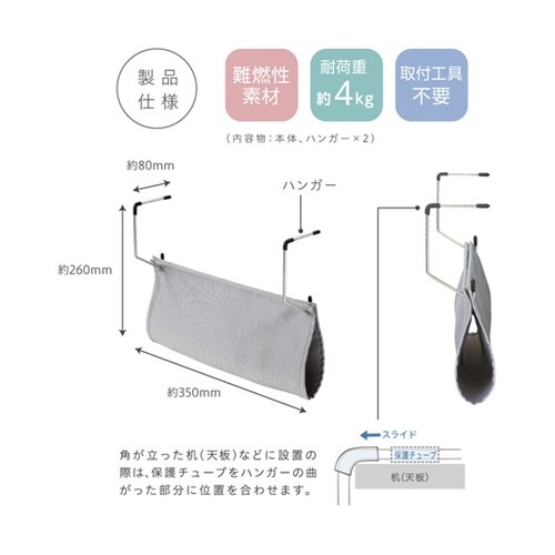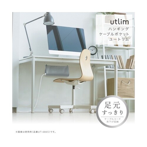 Utlimシリーズのハンギングケーブルポケットです。デスク下で散らかりがちな電源タップやコード類をまとめて収納できます。浮かせる収納で、足元のお掃除もラクラクです。 |