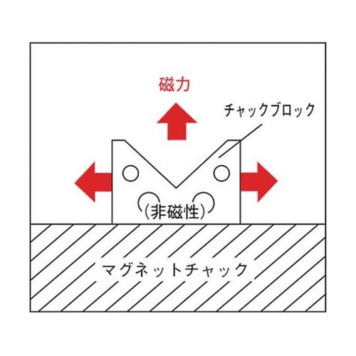 製品そのものには磁気はありませんので、マグネットチャックの上に載せて磁気を誘導してワークを吸着します。特殊形状のワークでも容易に対応でき、既設チャックをフル活用できます。 |