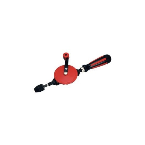 手回しでの穴あけ作業に。先端にドリルをつければ手回しで穴あけが可能です。ガラスなど低回転速度を必要とする穴あけに便利です。ハンドル部にはドリルが収納可能です。 |