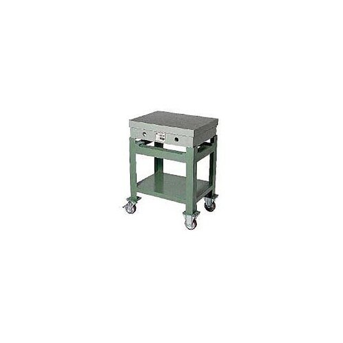 キャスター付のため定盤の移動が容易にできます。キャスターは固定機能(ストッパー)付きです。棚板付きのため測定治具等の保管に便利です。 |