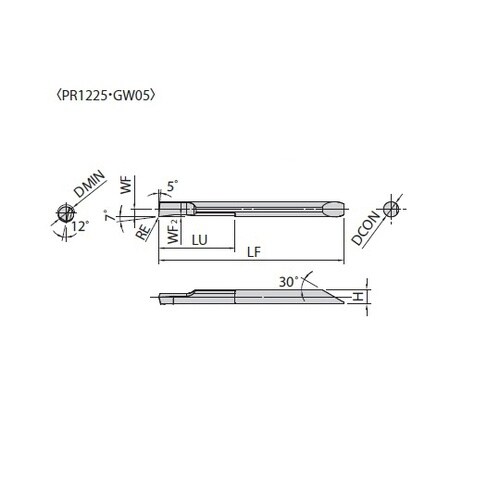 ブレーカなし(ダイヤ・CBN・アルミ加工用)非鉄金属加工用。内径加工。止まり穴への加工は、推奨しません。前切れ刃がワーク中心を超えた状態で加工すると欠損する場合があります。 |