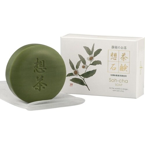 「緑茶(静岡県産有機栽培)」の美肌成分と、必須ミネラルを豊富に含んだ「麦飯石超微粒子」を配合した洗顔石鹸です。 |