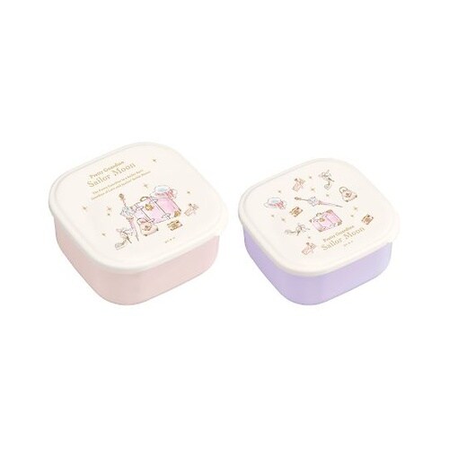 セーラームーンのシール容器2個セットです。デザートやサラダ入れなどの小分けに便利です。保存容器としてもお使いいただけます。入れ子式でコンパクトに収納できます。蓋を外せば電子レンジ対応です。 |