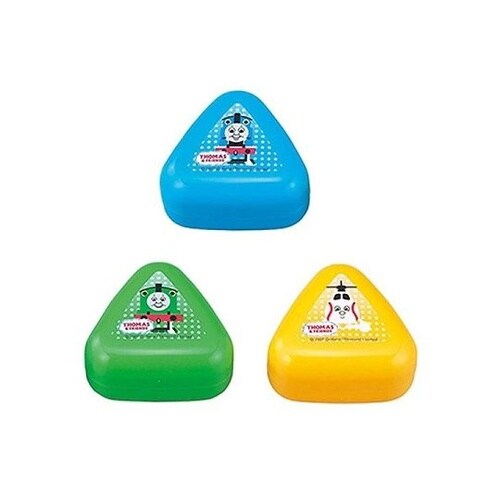 お弁当をかわいく演出する「きかんしゃトーマス」ランチ小物シリーズ。ラップにご飯を包んでケースに入れると三角おにぎりがカンタンに作れます。電子レンジにも使える携帯おにぎりケースです。 |