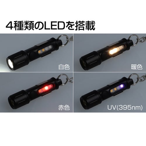 明るさ300ルーメンのブーストモード搭載サイド暖色LED & サイド赤色LED & サイドチップタイプUV LED搭載USB充電式UVライト:UV(紫外線)とは光の波長が400nmまでの光のこと。 |