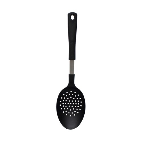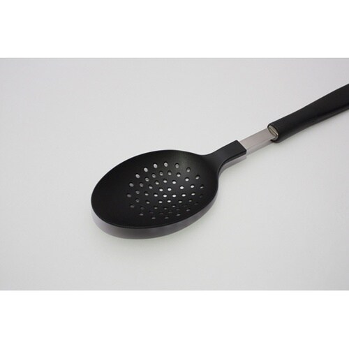 汁を切って具材だけを取り出したり、取り分ける際に便利な穴あきスプーンです。ヘッド部は剛性・耐熱性に優れた66ナイロンを使用し、フライパンやお皿などの表面を傷つけにくいです。 |