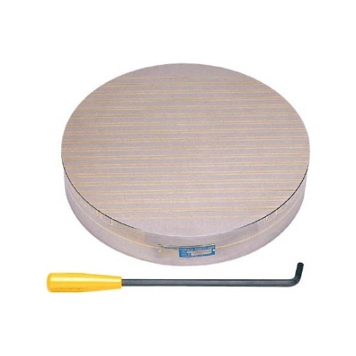 研削作業と切削作業に使用可能です。強力で、しかも残留磁気が少ないタイプです。精度変化が少ない高精度チャックです。薄物から厚物まで威力を発揮します。130°のハンドル回転で磁力の入・切ができます。 |