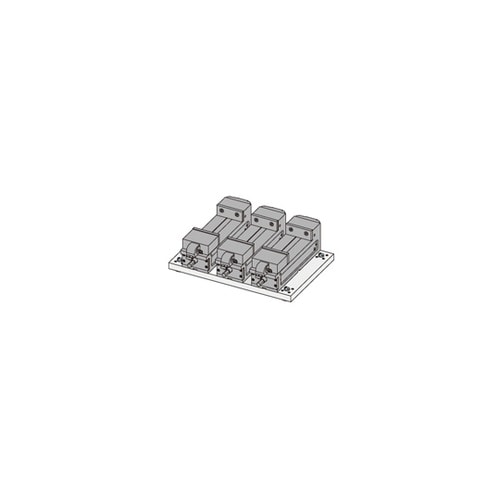 Qロック内蔵ネジ式テーブル専用のCVバイス付き取付プレートです。基準穴は焼入れブッシュ入りで、ピッチは±0.015の高精度に仕上げてあります。 |