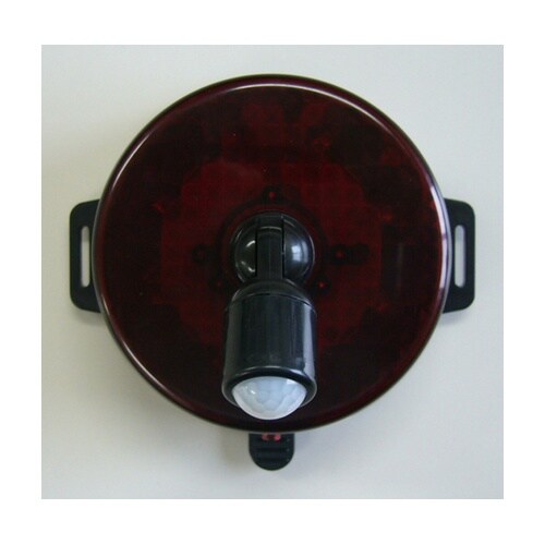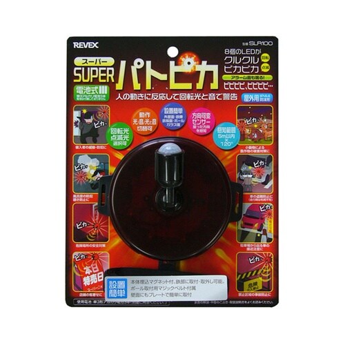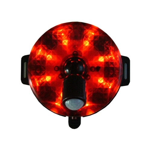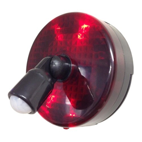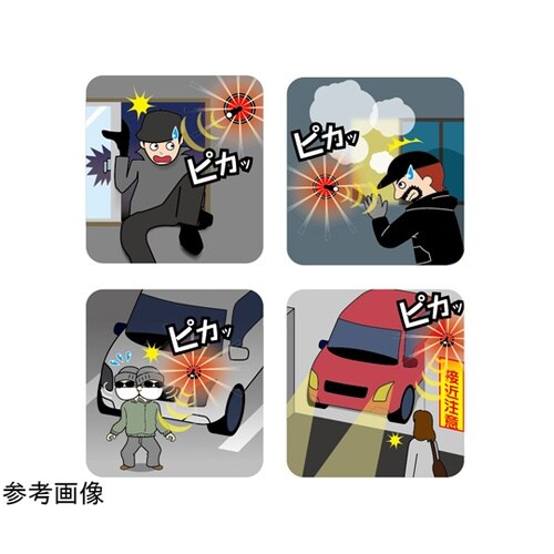 車や動物の動きも感知します。(感知範囲5mまで)方向可変センサー搭載でセンサーを目的物の方向に向けることができます。感知対象が前にいると動作し続けます。光だけ/音だけ/光と音の選択が可能です。 |