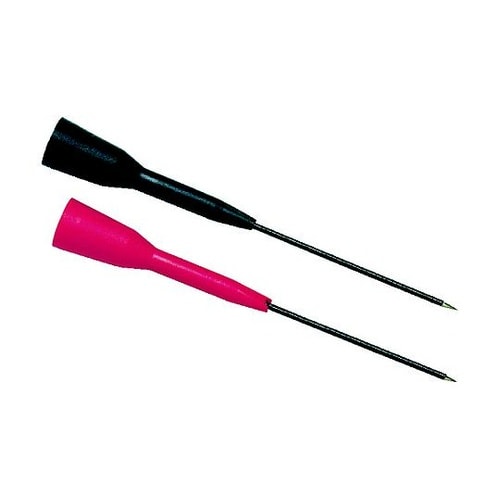尖った先端が電気コネクターに確実に接触し、ピンの絶縁体が他のワイヤーへの短絡から保護します。 |