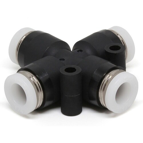 チューブサイズ:φ1・4インチ | 形状:クロスエイ | 質量:14.0g | 材質:樹脂・PBT、シールゴム・NBR | 使用流体:空気、水(条件あ…