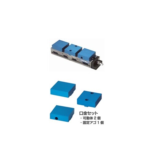 出荷時はダブルクランプバイスです。2個のワークを1つのバイスで同時にクランプでき、段取時間が短縮できます。可動体・固定アゴはアルミ製(A6N01S−T5・アルマイト処理)で軽量です。 |