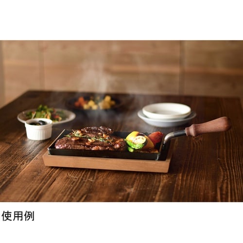 大人の鉄板小専用のウッドボードです。ボードに埋め込まれた金属バーとゴム脚が熱を逃がしテーブルに熱を伝えません。できたての美味しさをテーブルの上で楽しめます。 |