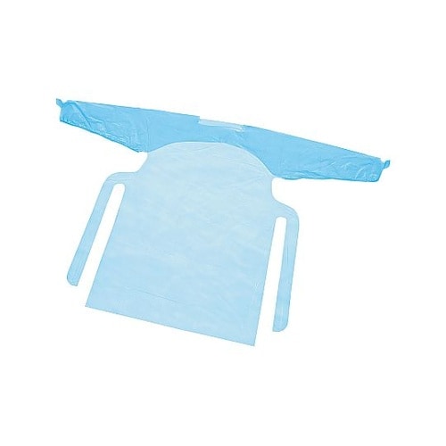 さっと着られてさっと脱げるエプロン腕までカバーできます。表面に触れず、手を広げるだけでさっと着用できるようにたたみ方を工夫した、衛生面と機能性に優れたエプロン。 |