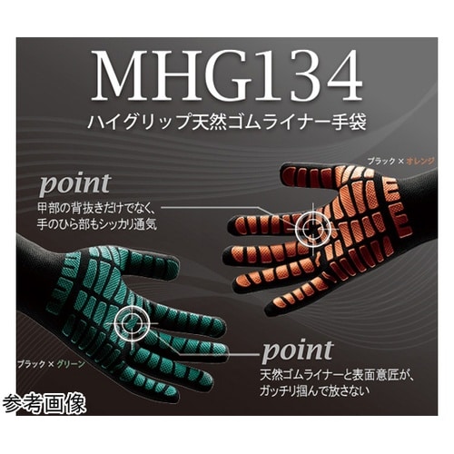特殊すべり止め加工をした天然ゴムライナーとその表面の意匠が、優れたグリップ力を発揮します。甲部の背抜きに加えて、手のひら部も通気性が良く快適です。 |