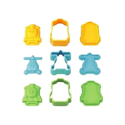 お弁当をかわいく演出する「きかんしゃトーマス」ランチ小物シリーズ。トーマス・パーシー・ハロルドのおにぎりができる押し型にもなり、パン・卵焼きなどの抜き型にもなります。 |