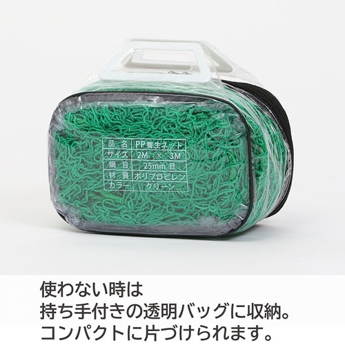 鳥獣害対策やグリーンカーテン、現場の養生、災害時の飛散防止など多用途に活躍。隅のロープで設置が簡単で、使用後は付属バッグへコンパクトに収納可能です。場所を問わず幅広く使える万能ネットです。 |