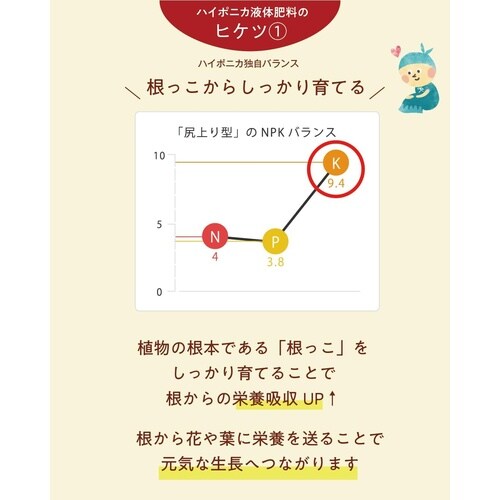 ハイポニカ水耕栽培キット専用の液体肥料ですが、土耕用肥料としても大変有効です。 |