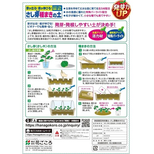 生育を早め丈夫な苗に育てる活力材、水の浸透性が優れた特殊パーライトを配合。粒子が細かいので、小さな種にも使えます |