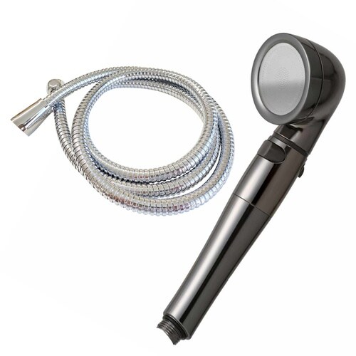 シルクのような優しい肌あたりの節水シャワーヘッド、ホース付きです。 シャワーの勢いはそのまま、最大70%の節水効果を発揮します。 ヘッド背面のスイッチでソフト水流とハード水流を切り替え可能です。 |