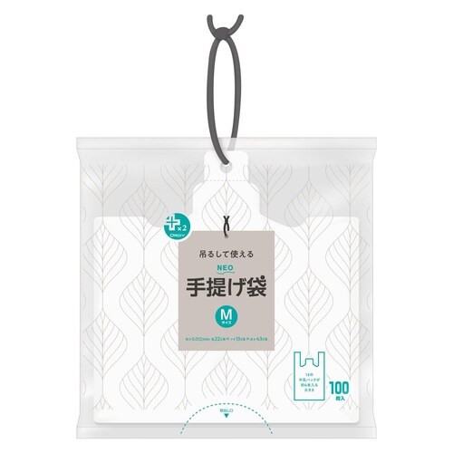 ポリ袋 M 100枚入り 手提げ 紐付き プラスプラスネオ 乳白 ※5個以上から注文可能(販売価格は1個単位の価格)