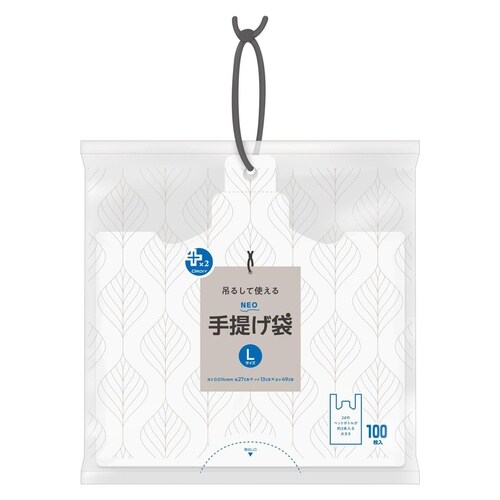 ポリ袋 L 100枚入り 手提げ 紐付き プラスプラスネオ 乳白 ※4個以上から注文可能(販売価格は1個単位の価格)