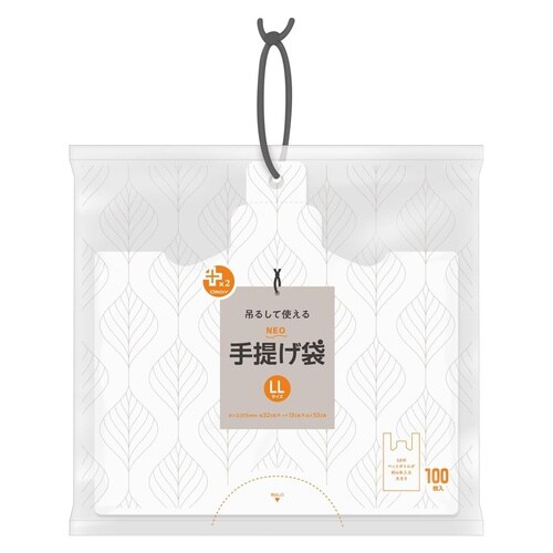 ポリ袋 LL 100枚入り 手提げ 紐付き プラスプラスネオ 乳白 ※2個以上から注文可能(販売価格は1個単位の価格)