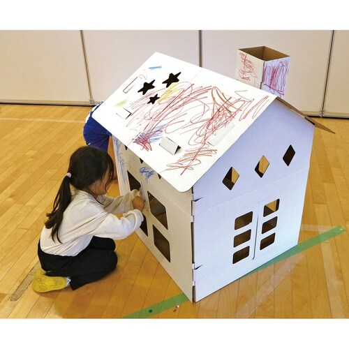 自由な発想を育てるダンボールハウスです。 お絵かきやデコレーションで自分だけのおうちを作れます。 組立が簡単で、遊び終わったら解体して収納できます。 ダンボールの角は手を切らない加工を施しています。 |