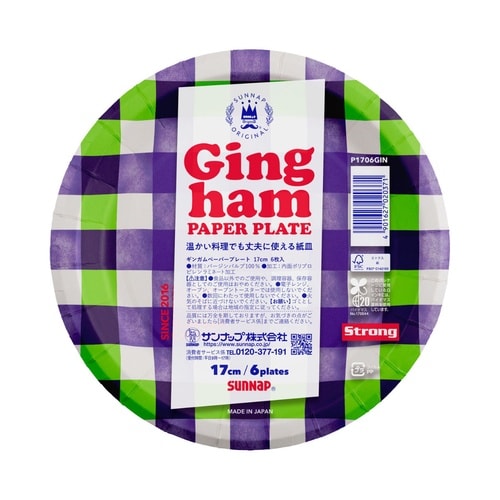 紙皿 17cm 6枚入 FMXギンガムペーパープレート ※8個以上から注文可能(販売価格は1個単位の価格)