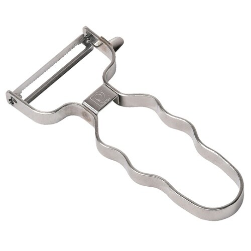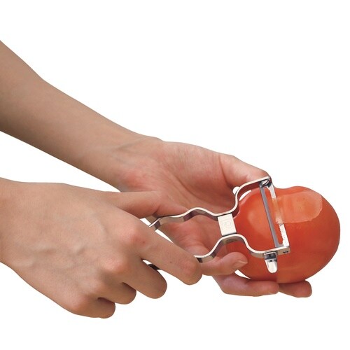 トマトやキウイなど、やわらかい野菜や果物の皮をきれいにむけるピーラーです。 手にフィットする波型グリップです。 サビに強く丈夫で衛生的なオールステンレス製です。 |