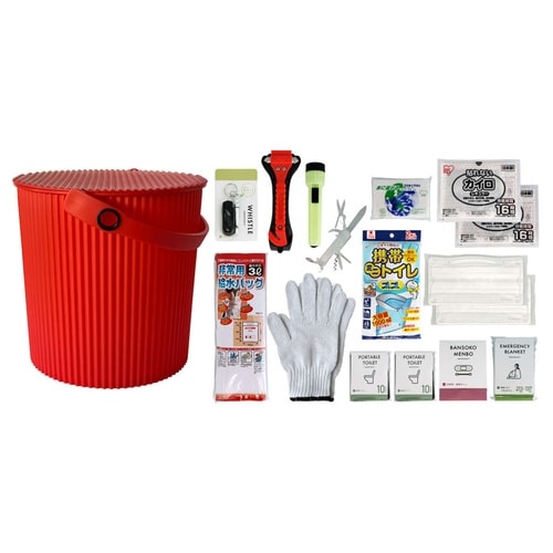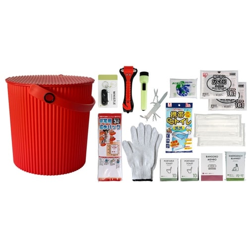 防災セット ウェイビー 車載用 座れる防災バケツセット 17点セット レッド