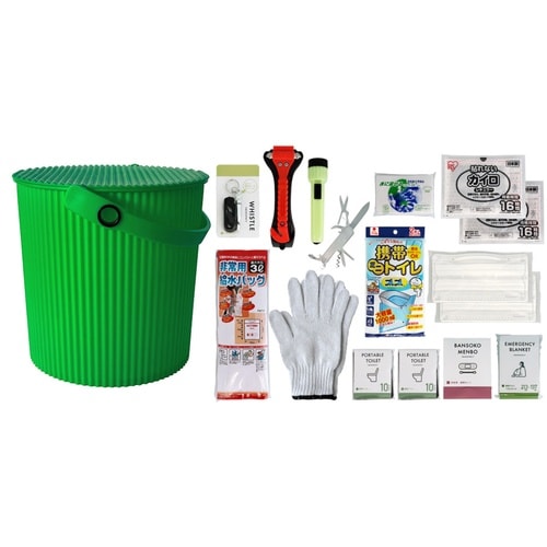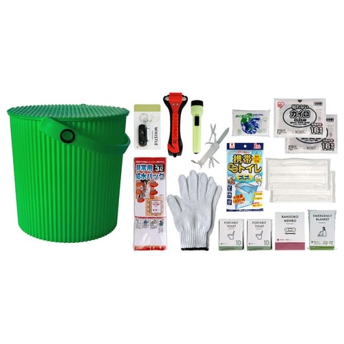 防災セット ウェイビー 車載用 座れる防災バケツセット 17点セット グリーン