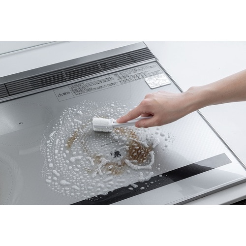 水アカ落とし洗剤と併用することで、頑固な汚れをしっかり落とすお掃除ブラシです。 洗剤が浸透して浮かせた汚れをポリエステル樹脂加工クリーナーでかき出し、はがし落とします。 |