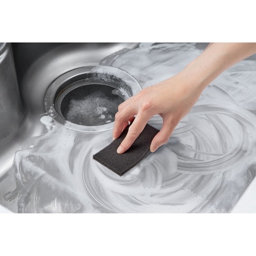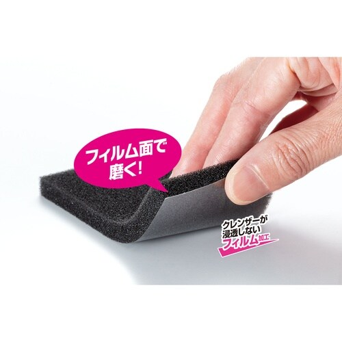 シンク磨きクレンザーと一緒に使って、しつこい汚れをしっかり落とせるスポンジです。 表面にフィルム加工を施しているため、クレンザーがスポンジ内部に浸透せず、研磨力をムダなく発揮します。 |